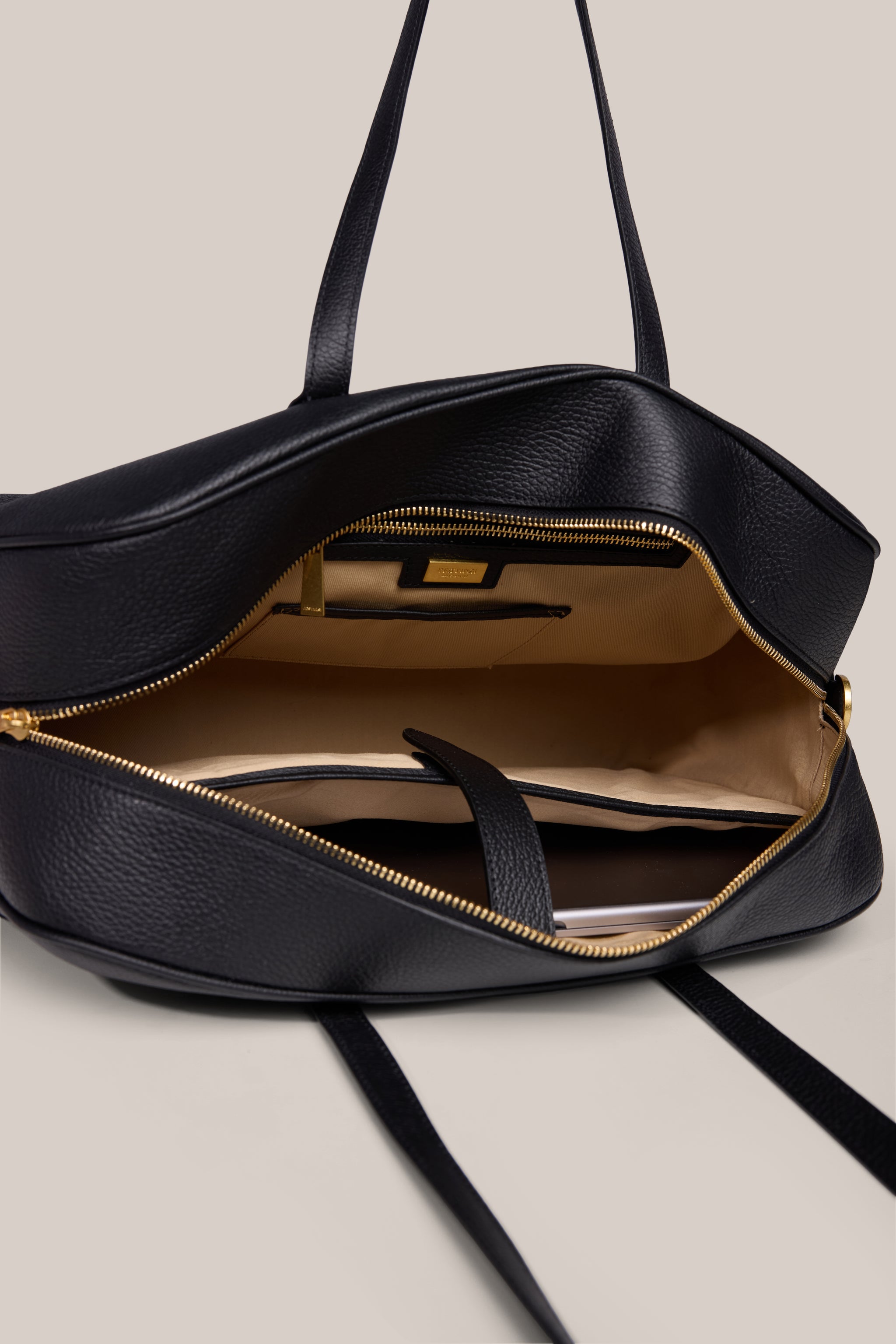The Vera Large Bowler is designed for the days that require more. Handcrafted in Italy from our signature pebbled leather, it offers a refined solution for carrying up to a 16-inch laptop without the aesthetic of a traditional work bag. It is a quiet, functional anchor for your wardrobe. A piece that simplifies your life and pulls your look together, always.